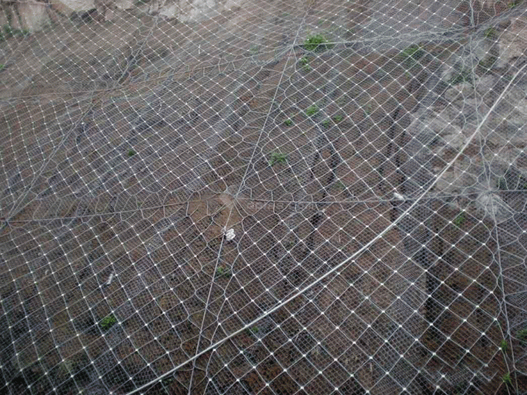 主動(dòng)防護(hù)系統(tǒng)是以用鋼絲繩網(wǎng)為主的各類柔性防護(hù)網(wǎng)覆蓋或包裹在需要防護(hù)的斜坡以及巖石上,以限制坡面巖石土體的風(fēng)化剝落或者破壞以及危巖崩塌(加固作用),或者將落石控制于一定范圍內(nèi)運(yùn)動(dòng)(維護(hù)作用)。